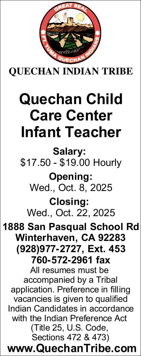 Oct 08, 2025. Quechan Indian Tribe Education Jobs from Yuma Sun Jobs