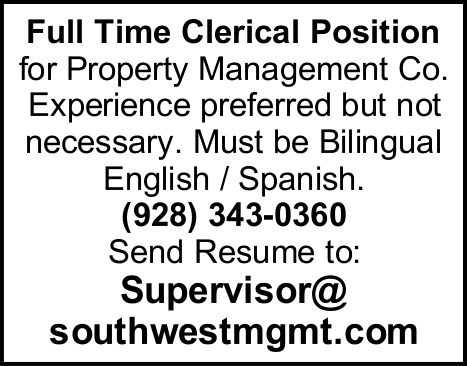 Clerical Position Available in Yuma, AZ