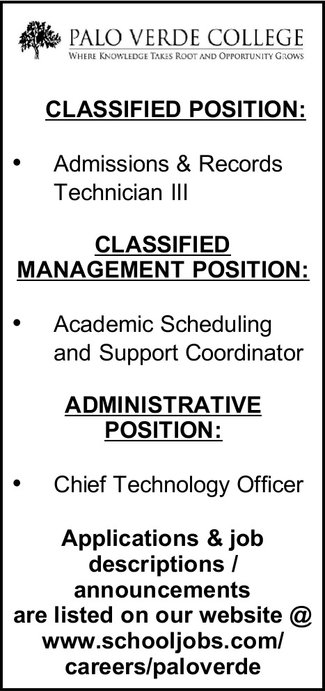Dec 24, 2025. Palo Verde College Education Jobs from Yuma Sun Jobs