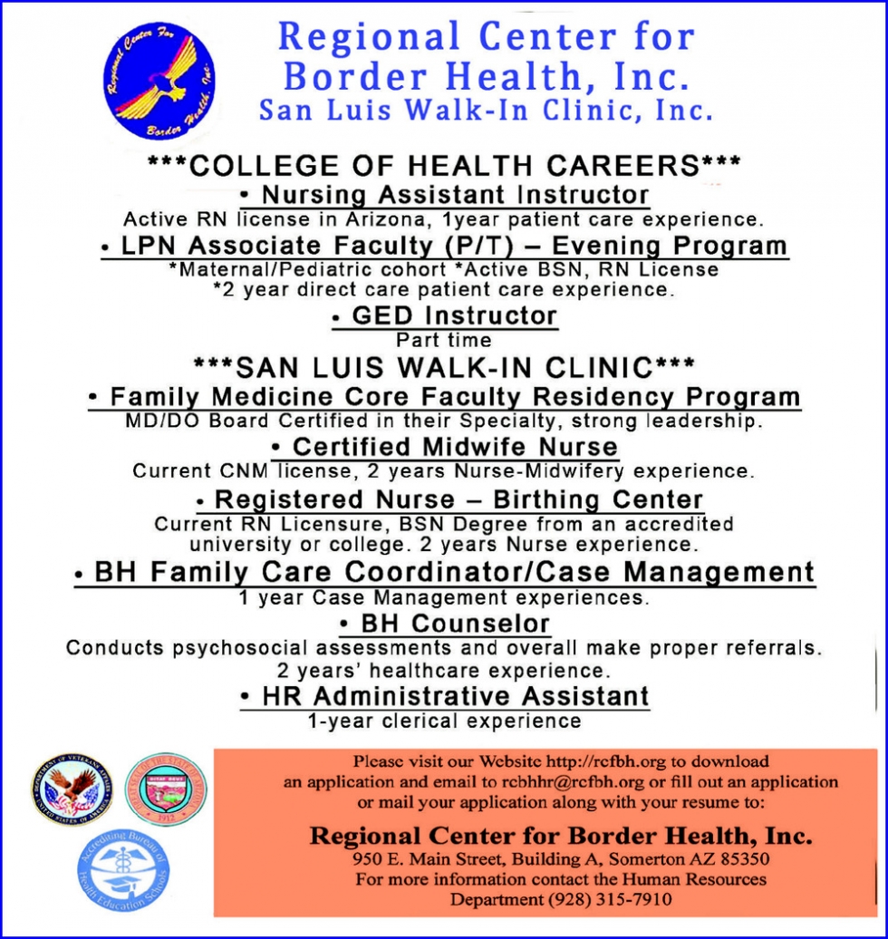 Apr 01, 2026. Regional Center for Border Health, Inc Education Jobs from Yuma Sun Jobs