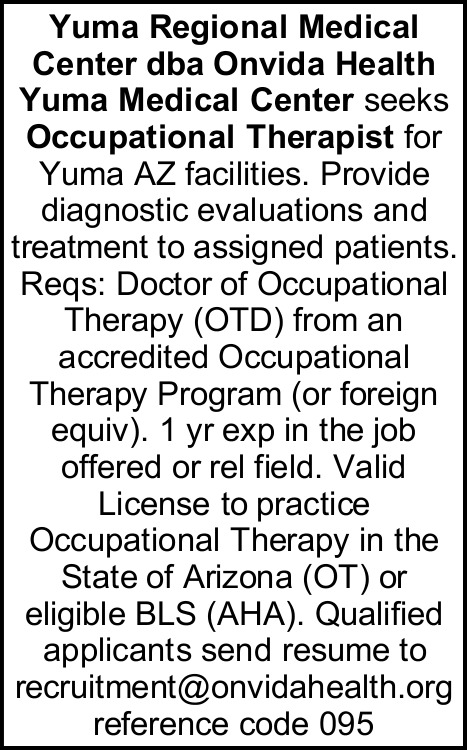 Apr 30, 2026. Yuma Regional Medical Center Healthcare/ Dental Jobs from Yuma Sun Jobs